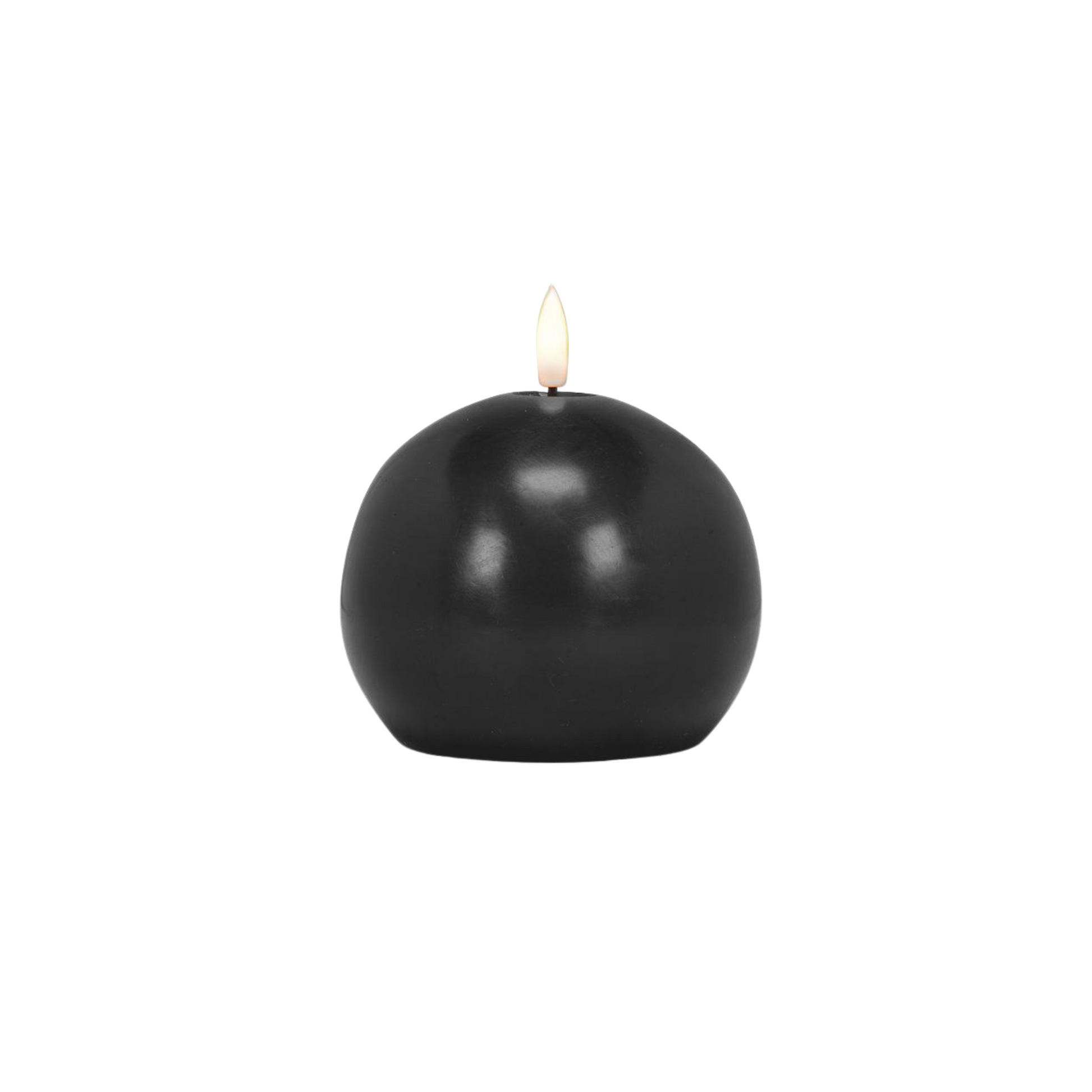 Enjoy the warm glow of candlelight without any fear of fire or mess with this elegant Green Luxlite LED Ball Candle. Designed in Sweden, this all-wax ball-shaped candle features a realistic, flickering 3D LED flame, with a run time of over 150 hours. Features an 8 hour timer. Powered by 2 x AA batteries, this safe, ambience-adding candle makes an understated complement to any type of decor, either on its own or paired with other LED candles.